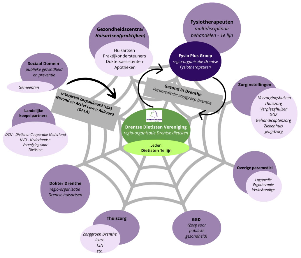 Diëtisten van de DDV zijn actief betrokken in meerdere regionale, multidisciplinaire samenwerkingsverbanden. Onder andere op het gebied van Oncologie, Diabetes, COPD en CVRM